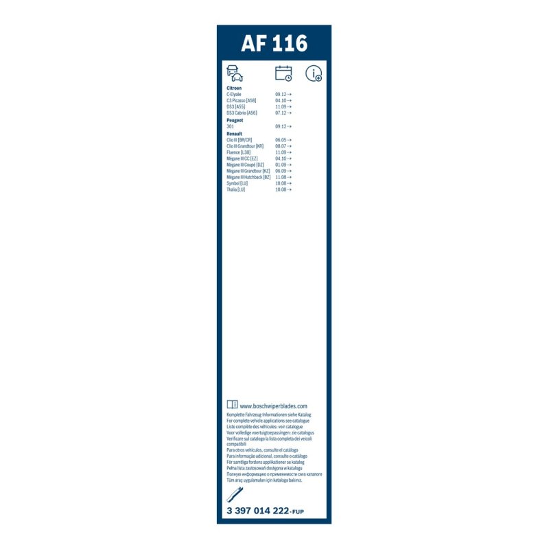 Ce Essuie glace BOSCH est conçu pour certains modèles CITROEN, PEUGEOT, RENAULT. Il s’agit d’une pièce équivalente OEM, compatible avec la référence constructeur , fabriquée par BOSCH dans le respect des spécifications techniques d’origine. Identifié sous la référence 3397014222EAN: 4047026134803, ce produit est proposé au prix de 44.00 € TTC.