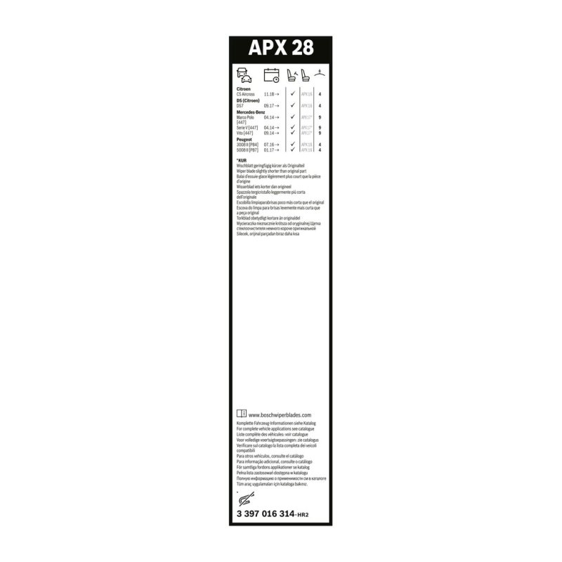 Ce Essuie glace BOSCH est une pièce équivalente OEM, compatible avec la référence constructeur , fabriquée par BOSCH conformément aux spécifications techniques d’origine. Il est destiné à offrir fiabilité et durabilité dans le cadre d’une réparation ou d’un remplacement standard.