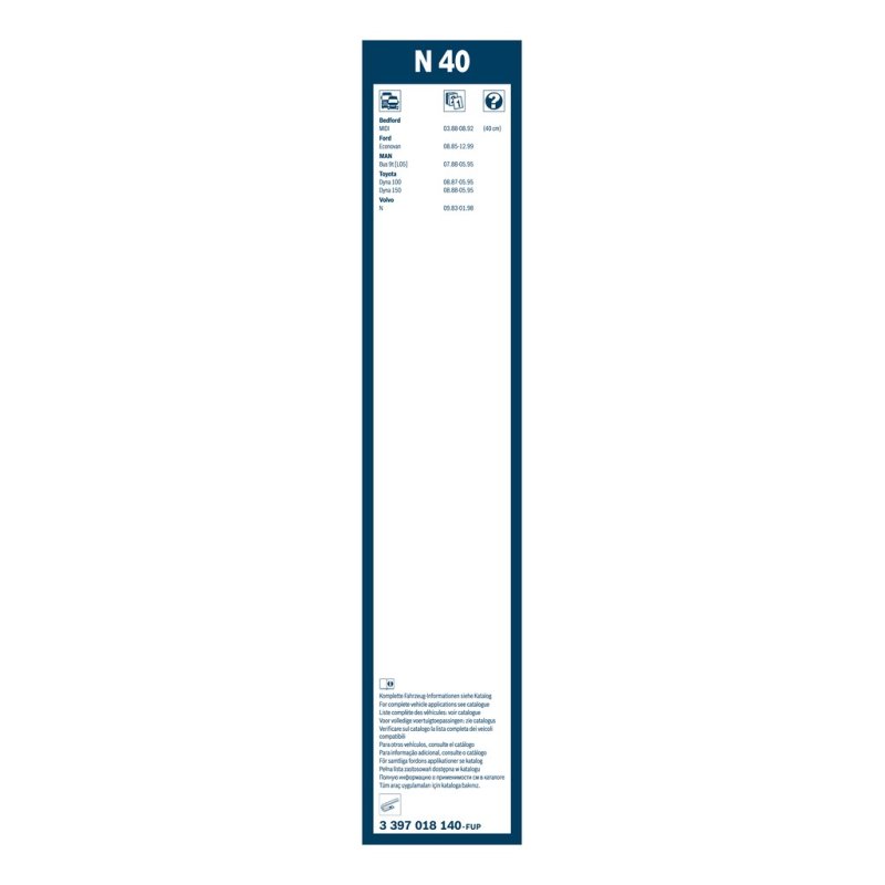 Produit : Essuie-glace BOSCH 3397018140 pour BEDFORD, DAF, FORD, MAN et plus encore...