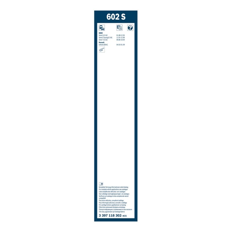 Produit : Essuie-glace BOSCH 3397118302 pour ALPINA, BMW, RENAULT, référence d'origine 61611378773