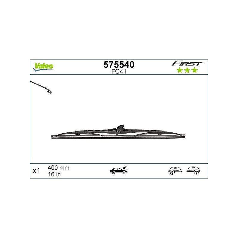 Ce Essuie glace VALEO est conçu pour certains modèles ABARTH, ALFA ROMEO, AUDI, AUSTIN, BMW, CHEVROLET, CHRYSLER, CITROEN, DACIA, DAEWOO. Il s’agit d’une pièce équivalente OEM, compatible avec la référence constructeur , fabriquée par VALEO dans le respect des spécifications techniques d’origine. Identifié sous la référence 575540EAN: 3276425755406, ce produit est proposé au prix de 26.00 € TTC.
