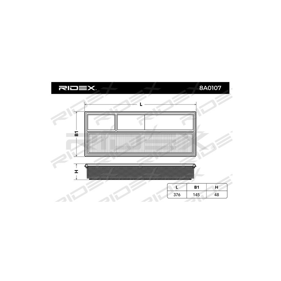 Filtre à air RIDEX 8A0107 pour FIAT, LANCIA, ALFA ROMEO, VAUXHALL, FORD