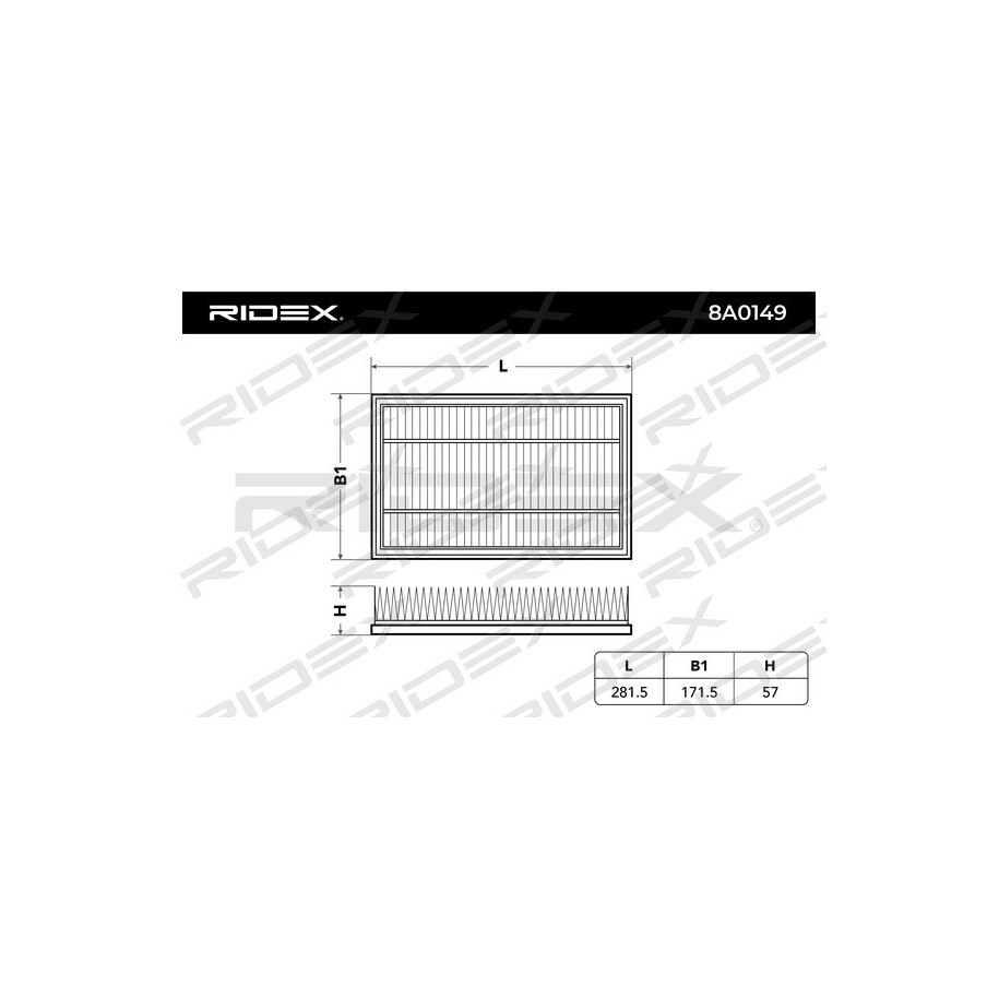 Filtre à air RIDEX 8A0149 pour FORD, VOLVO 1232494