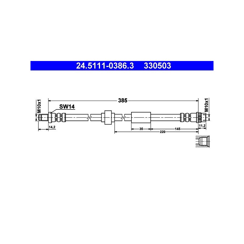 Flexible de frein ATE 24.5111-0386.3 pour NISSAN, VAUXHALL, RENAULT,