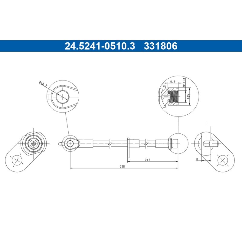 Flexible de frein ATE 24.5241-0510.3 pour TOYOTA C-HR OE 90947-W2069