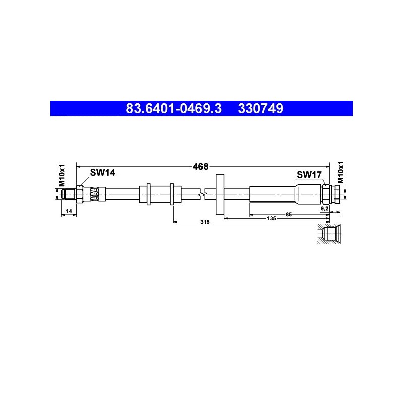 Produit : Flexible de frein ATE 83.6401-0469.3 pour CITROËN, FIAT, PEUGEOT