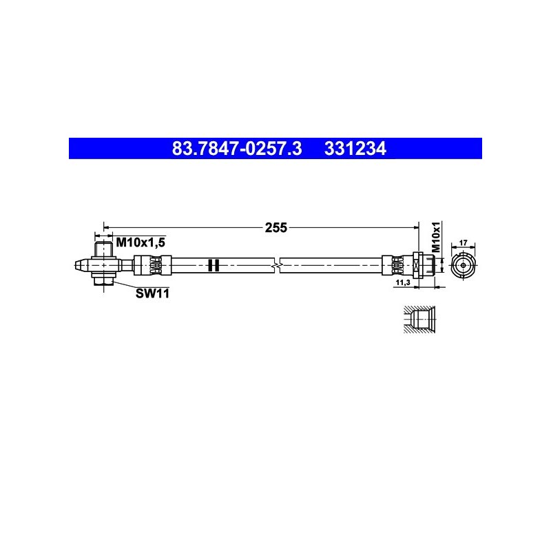 Produit : Flexible de frein ATE 83.7847-0257.3 pour AUDI, SEAT, SKODA, VW OE 1K0611776