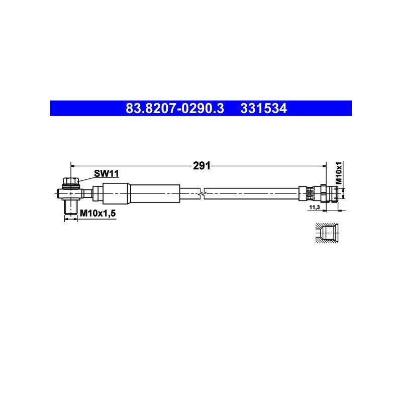 Produit : Flexible de frein ATE 83.8207-0290.3 pour AUDI, SKODA, VW OE 5Q0611775J