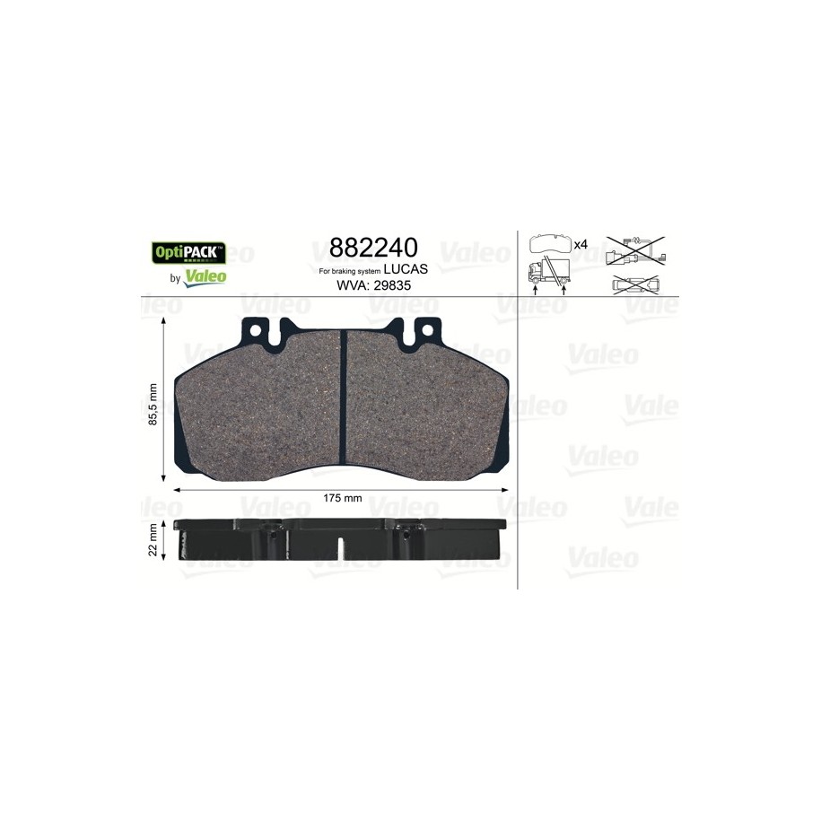 Produit : Jeu de plaquettes de frein à disque VALEO 882240 pour IVECO, MAN, MERCEDES OE 0014201520