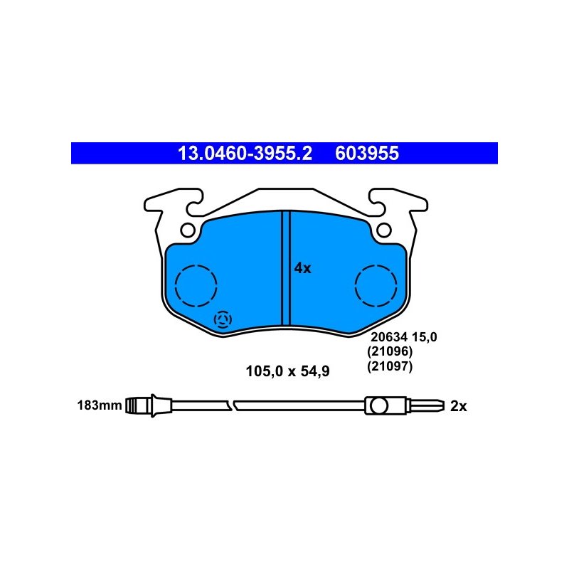 Jeu de plaquettes de frein ATE 13.0460-3955.2 pour RENAULT, référence d'origine 7701202891