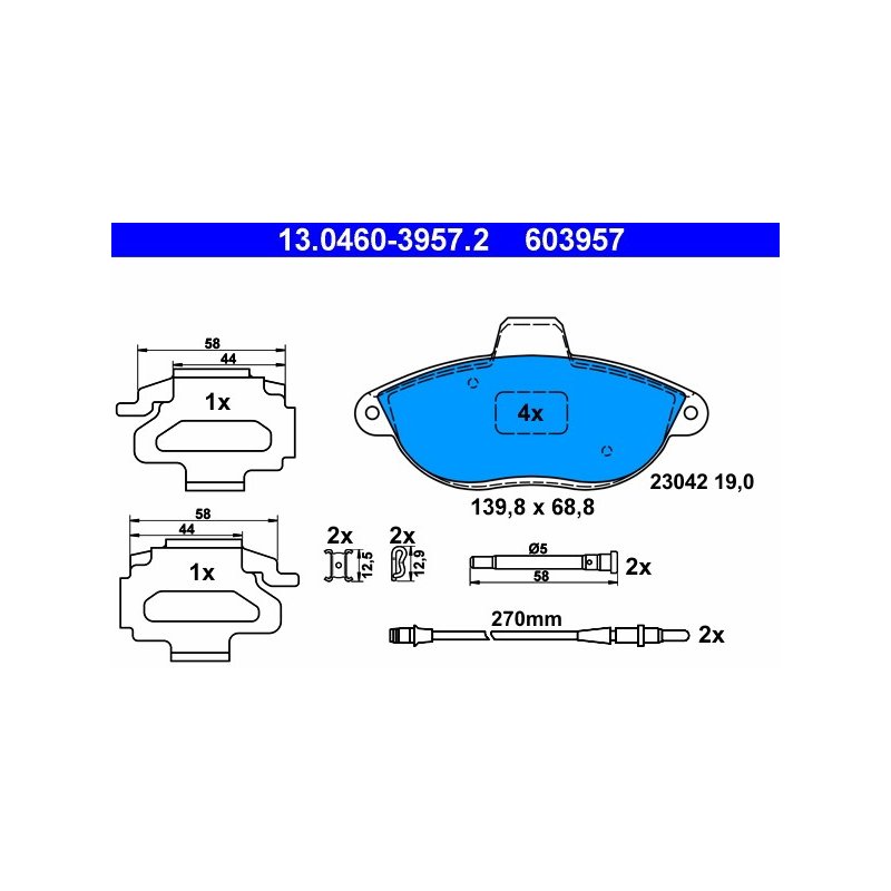 Jeu de plaquettes de frein ATE 13.0460-3957.2 pour CITROËN, FIAT, PEUGEOT OE 425150
