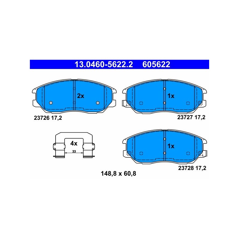 Produit : Jeu de plaquettes de frein ATE 13.0460-5622.2 pour HYUNDAI, SSANGYONG OE 4813A21100