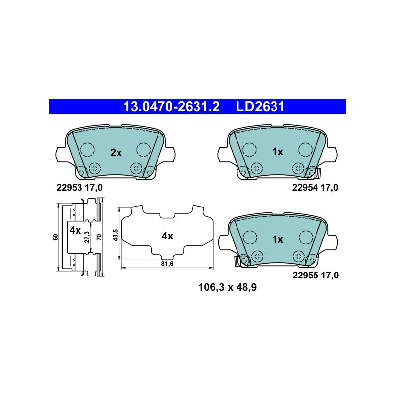 Produit : Jeu de plaquettes de frein ATE 13.0470-2631.2 pour VAUXHALL INSIGNIA OE 13517694