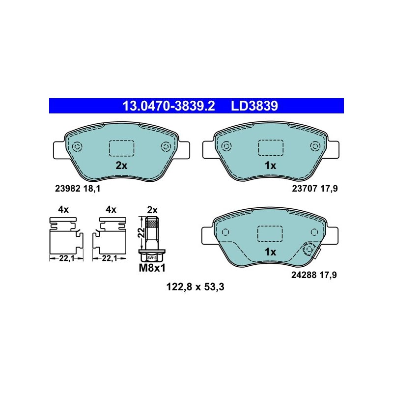 Produit : Jeu de plaquettes de frein ATE 13.0470-3839.2 pour VAUXHALL ADAM, CORSA, CORSAVAN