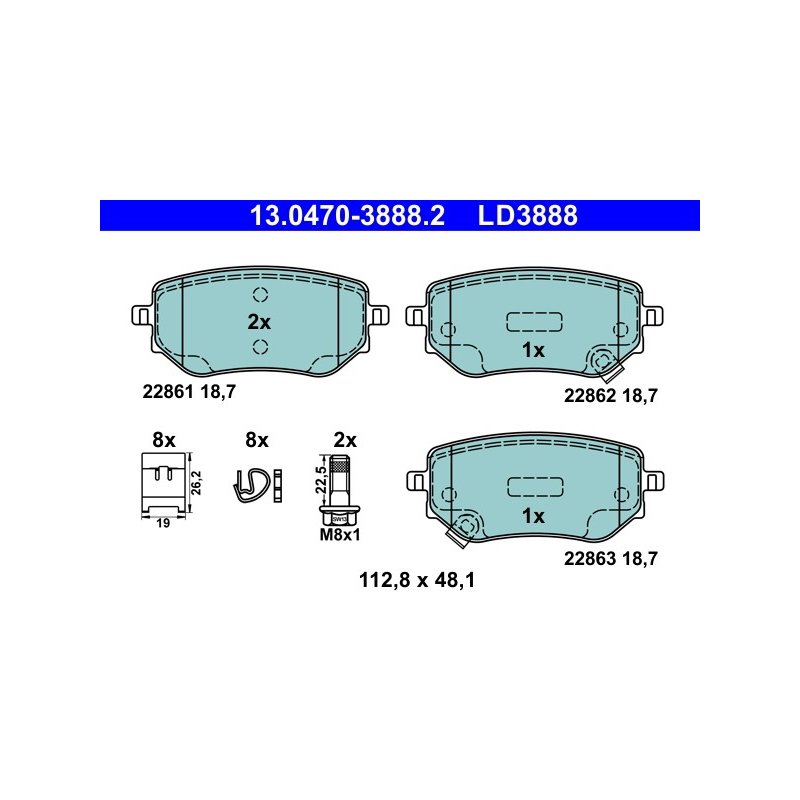 Jeu de plaquettes de frein ATE 13.0470-3888.2 pour MERCEDES, NISSAN, RENAULT,