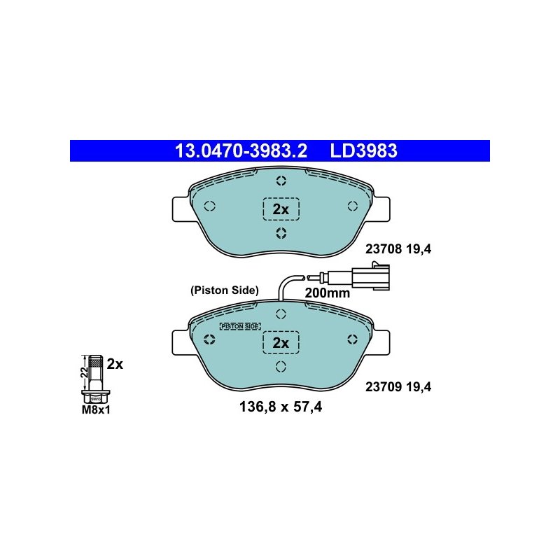 Améliorez les performances et la fiabilité de votre véhicule avec ce Jeu de plaquettes de frein ATE de qualité Premium, conçu pour certains modèles CHRYSLER, FIAT, LANCIA. Ce produit constitue une solution fiable en tant que pièce équivalente OEM, compatible avec les spécifications d’origine du constructeur. Fabriqué par ATE, il répond aux exigences du secteur automobile.