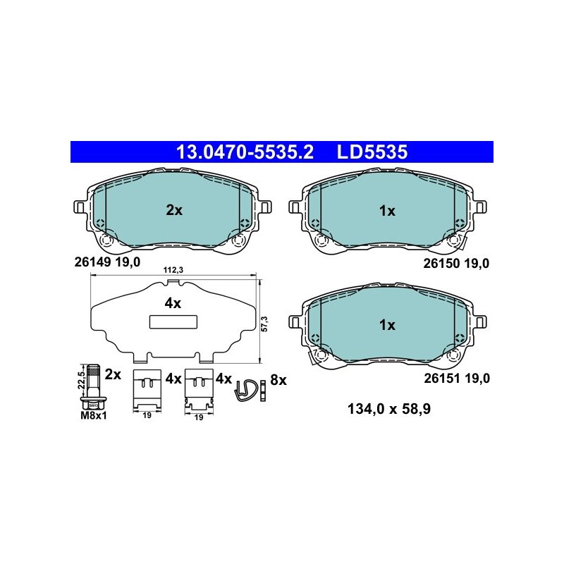 Produit : Jeu de plaquettes de frein ATE 13.0470-5535.2 pour TOYOTA COROLLA, YARIS