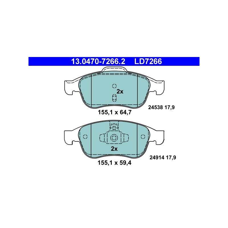 Produit : Jeu de plaquettes de frein ATE 13.0470-7266.2 pour RENAULT, GRAND, MEGANE, SCENIC