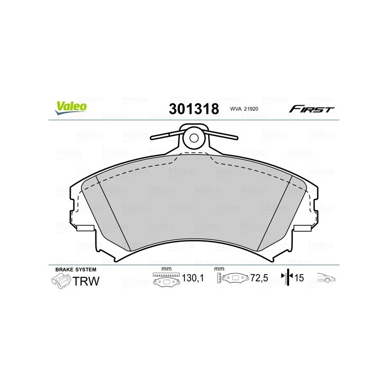 Jeu de plaquettes de frein VALEO 301318 pour MITSUBISHI, PROTON, SMART, VOLVO