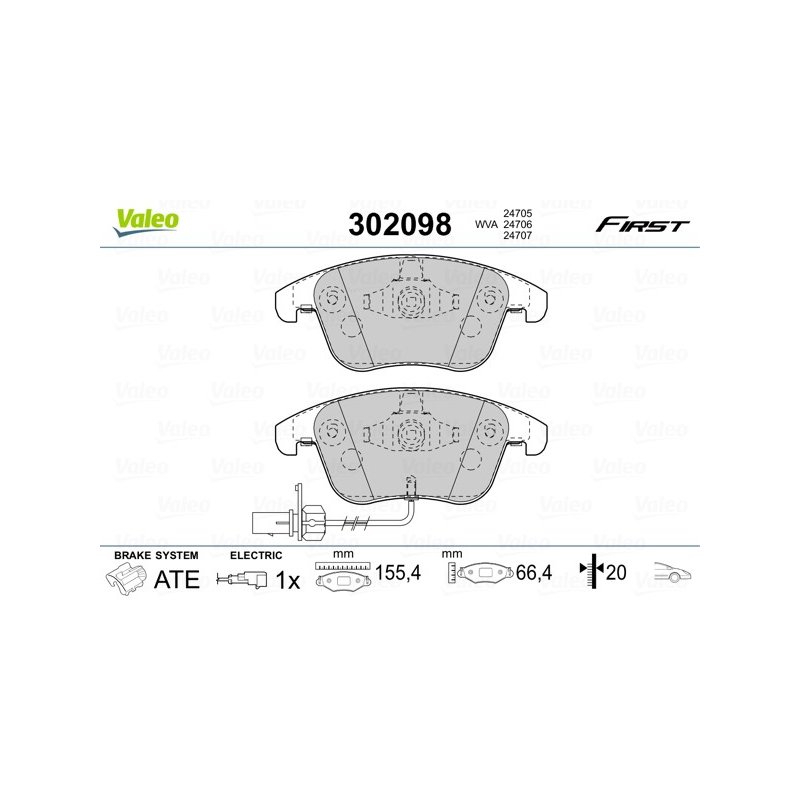 Jeu de plaquettes de frein VALEO 302098 pour AUDI A4, A5 OE 8K0698151A