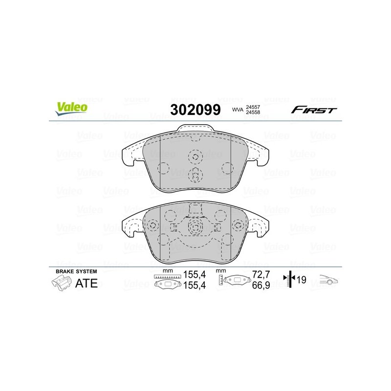 Produit : Jeu de plaquettes de frein VALEO 302099 pour CITROEN, DS, PEUGEOT OE 1647862580