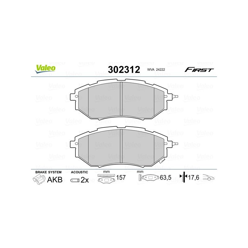 Jeu de plaquettes de frein VALEO 302312 pour SUBARU OE 26296-AG030