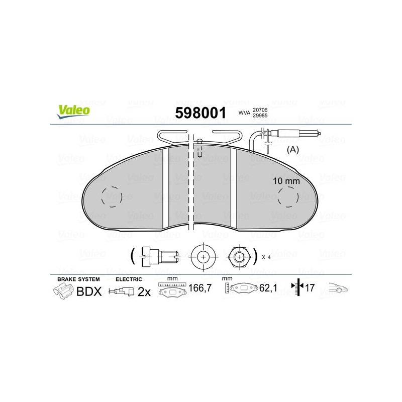 Jeu de plaquettes de frein VALEO 598001 pour camions NISSAN, RENAULT, RENAULT,