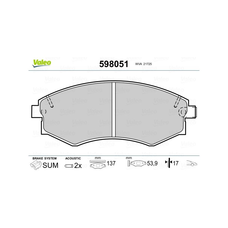 Jeu de plaquettes de frein VALEO 598051 pour DAEWOO, GM KOREA, HYUNDAI, KIA et plus encore...