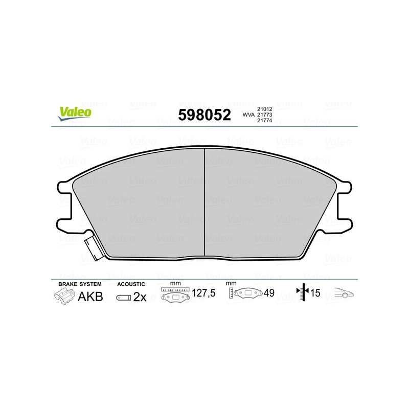 Produit : Jeu de plaquettes de frein VALEO 598052 pour HYUNDAI OE 581011CA00