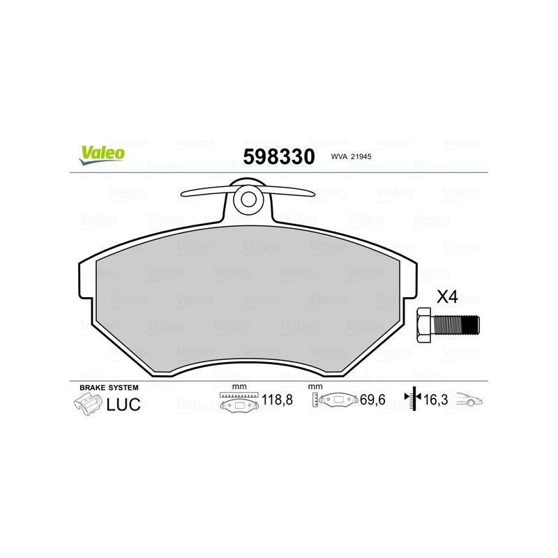 Produit : Jeu de plaquettes de frein VALEO 598330 pour SEAT, VW OE 1HM698151