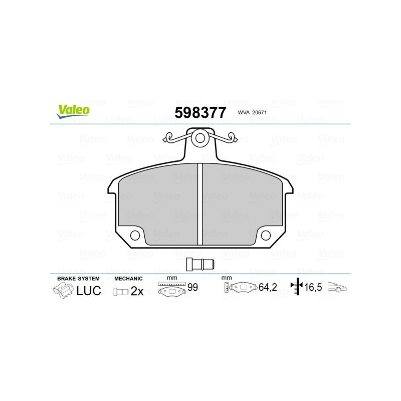 Produit : Jeu de plaquettes de frein VALEO 598377 pour RENAULT, référence d'origine 7701201059