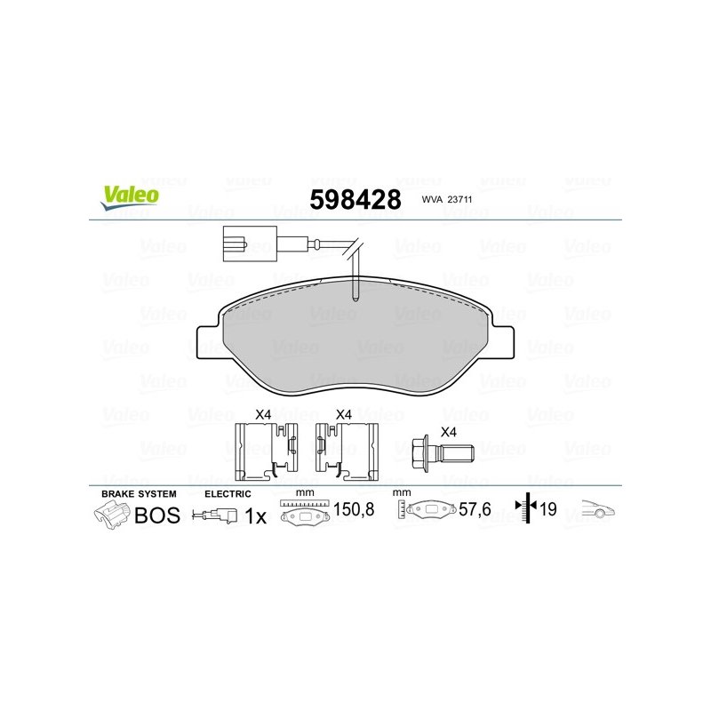 Jeu de plaquettes de frein VALEO 598428 pour ALFA ROMEO, CHRYSLER, FIAT, LANCIA