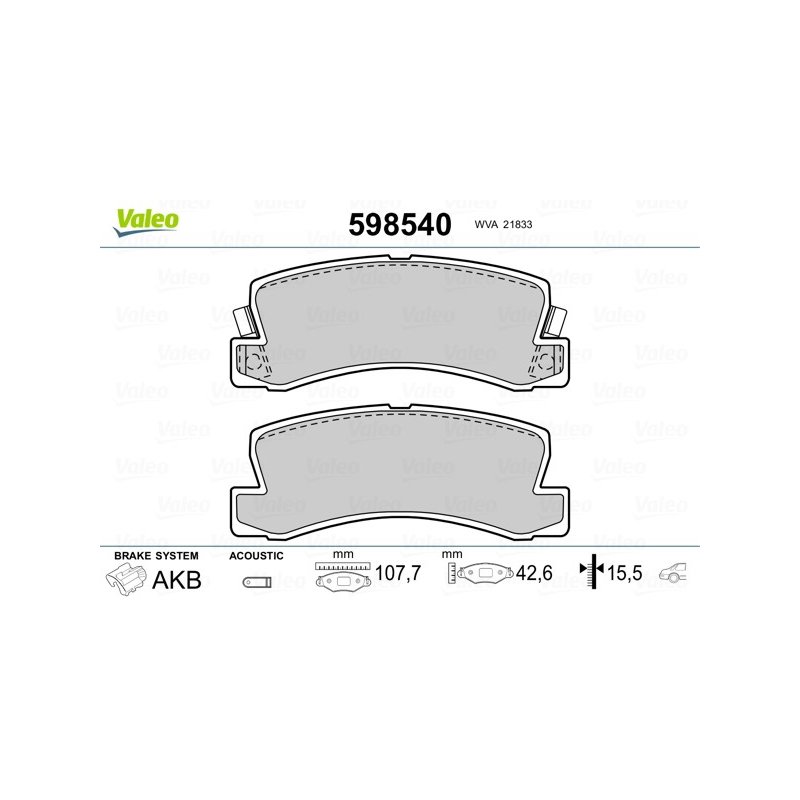 Produit : Jeu de plaquettes de frein VALEO 598540 pour ASTON MARTIN, FORD, GEO, LEXUS et plus encore...