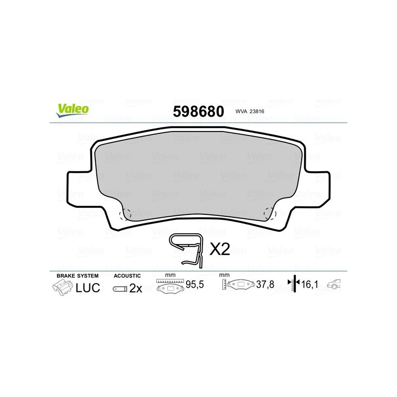 Jeu de plaquettes de frein VALEO 598680 pour TOYOTA COROLLA OE 04466-02070