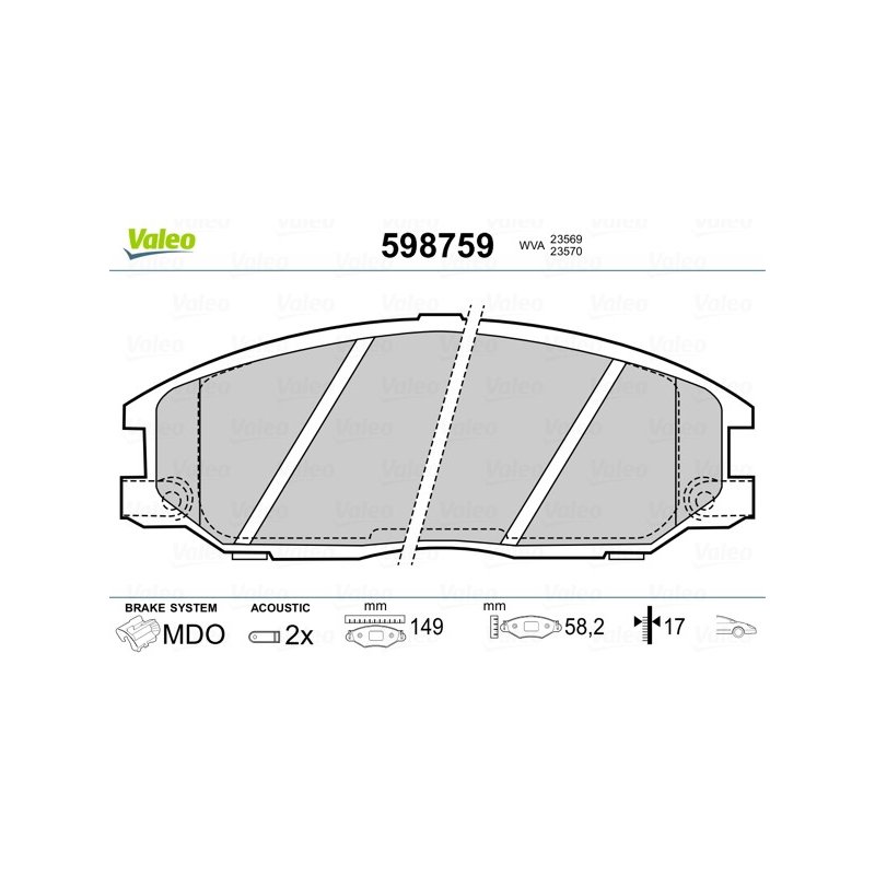 Améliorez les performances et la fiabilité de votre véhicule avec ce Jeu de plaquettes de frein VALEO de qualité Premium, conçu pour certains modèles DAEWOO, HYUNDAI, MG, SSANGYONG. Ce produit constitue une solution fiable en tant que pièce équivalente OEM, compatible avec les spécifications d’origine du constructeur. Fabriqué par VALEO, il répond aux exigences du secteur automobile.