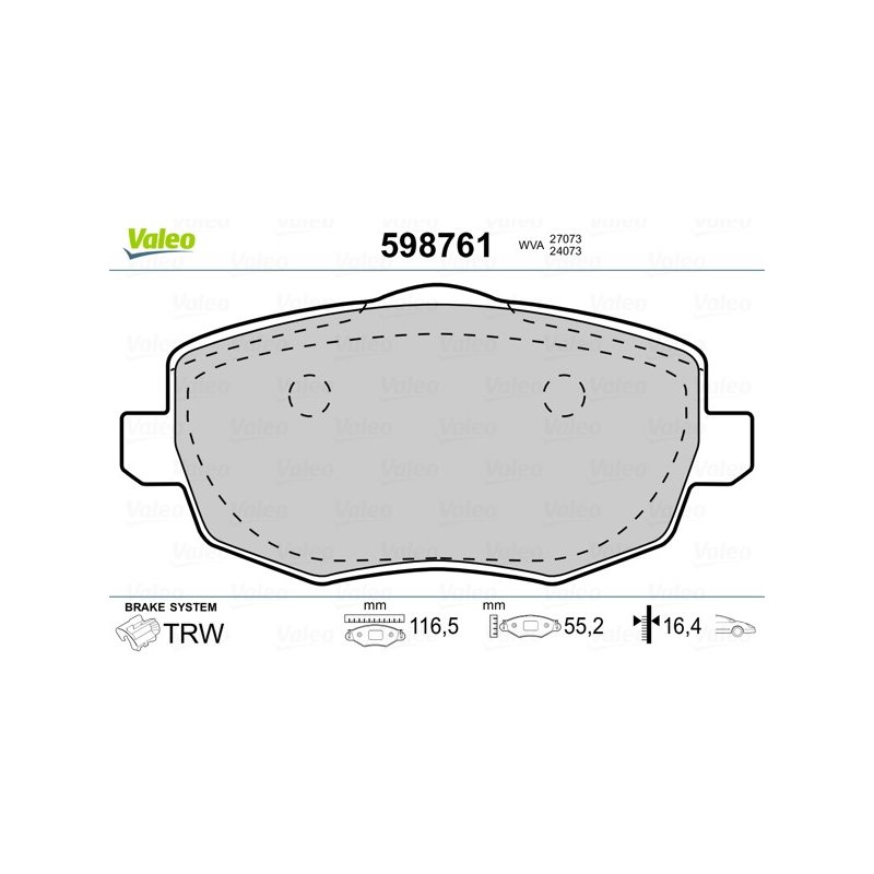 Jeu de plaquettes de frein VALEO 598761 pour CHRYSLER, LANCIA YPSILON OE 71752991