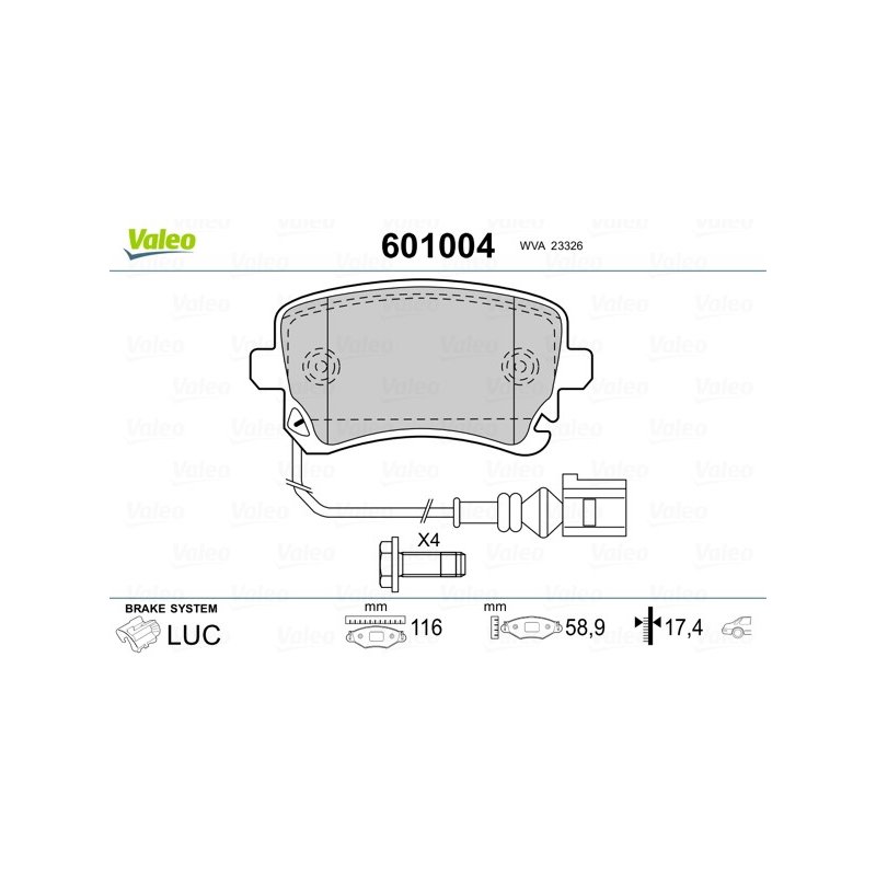 Jeu de plaquettes de frein VALEO 601004 pour AUDI, BENTLEY, VW OE 4B3698451