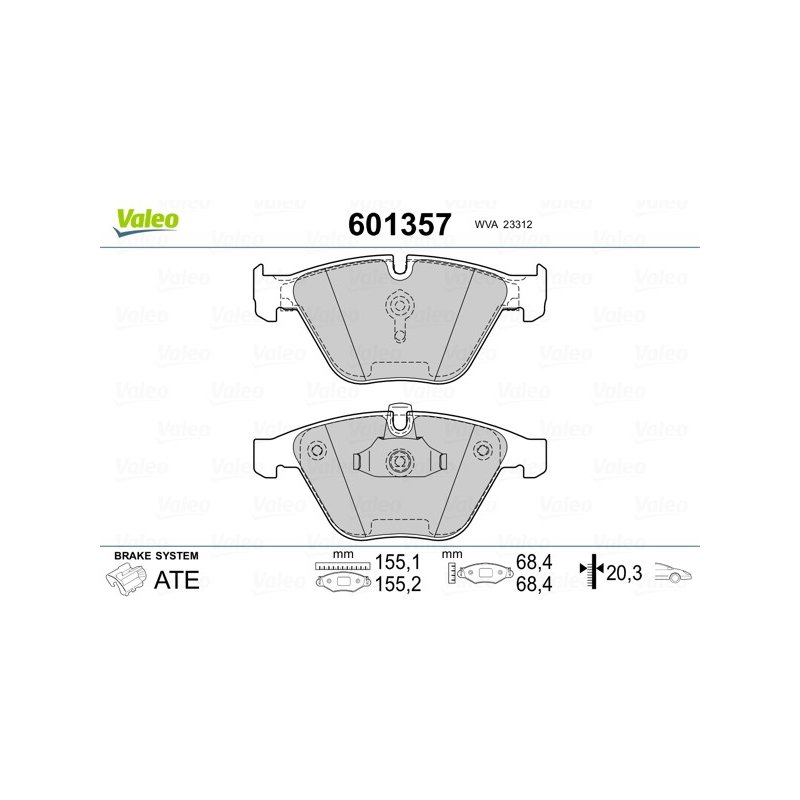 Jeu de plaquettes de frein VALEO 601357 pour BMW Série 5 et 6, référence d'origine 2339270