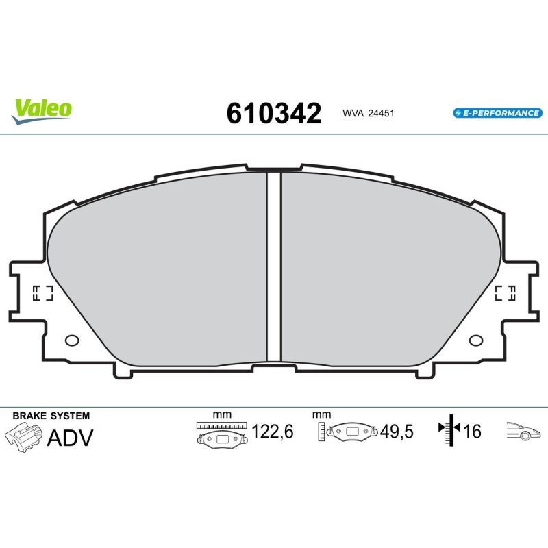 Jeu de plaquettes de frein VALEO 610342 pour LEXUS, TOYOTA CT, AURIS, PRIUS