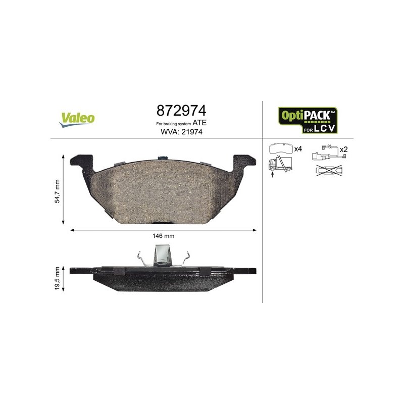 Produit : Jeu de plaquettes de frein VALEO 872974 pour VW LT OE 1K0698151K