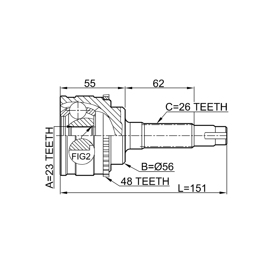 Joint homocinétique extérieur FEBEST 0110-037A48 pour TOYOTA 43410-16171