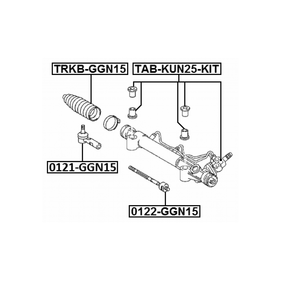 Produit : Kit de bagues de crémaillère de direction FEBEST TAB-KUN25-KIT pour TOYOTA HILUX, FORTUNER