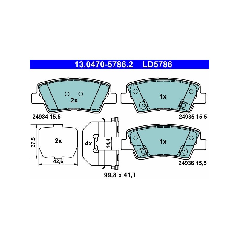 Produit : Plaquettes de frein ATE 13.0470-5786.2 pour HYUNDAI, KIA, SSANGYONG