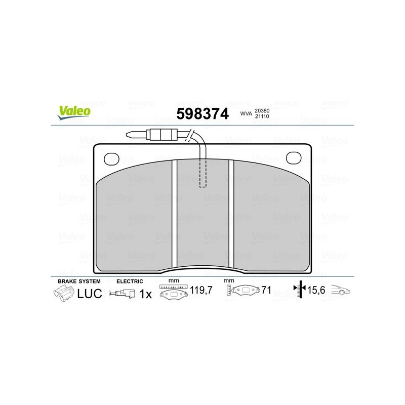 Plaquettes de frein VALEO 598374 pour camions Renault, Renault, référence d'origine 5001000478