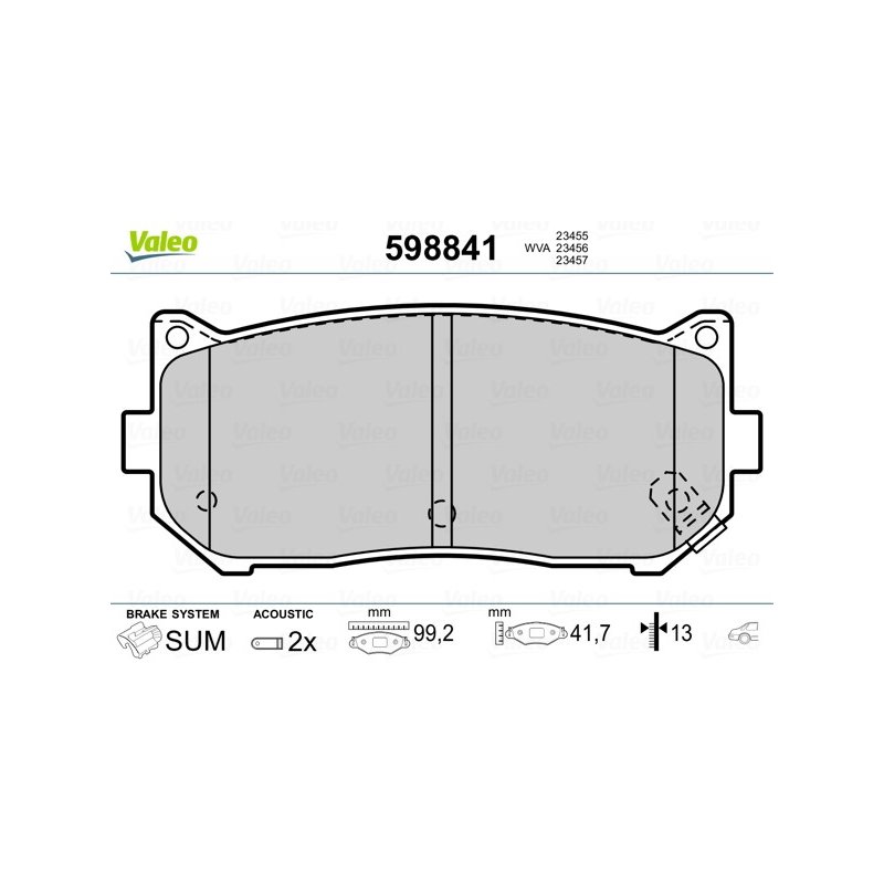 Produit : Plaquettes de frein VALEO 598841 pour KIA OE 0K2FC-26-28Z