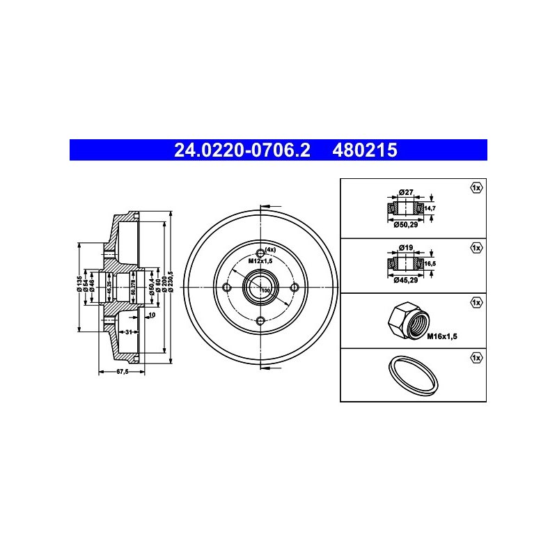 Tambour de frein ATE 24.0220-0706.2 pour KIA RIO OE 0K30A-26-250A