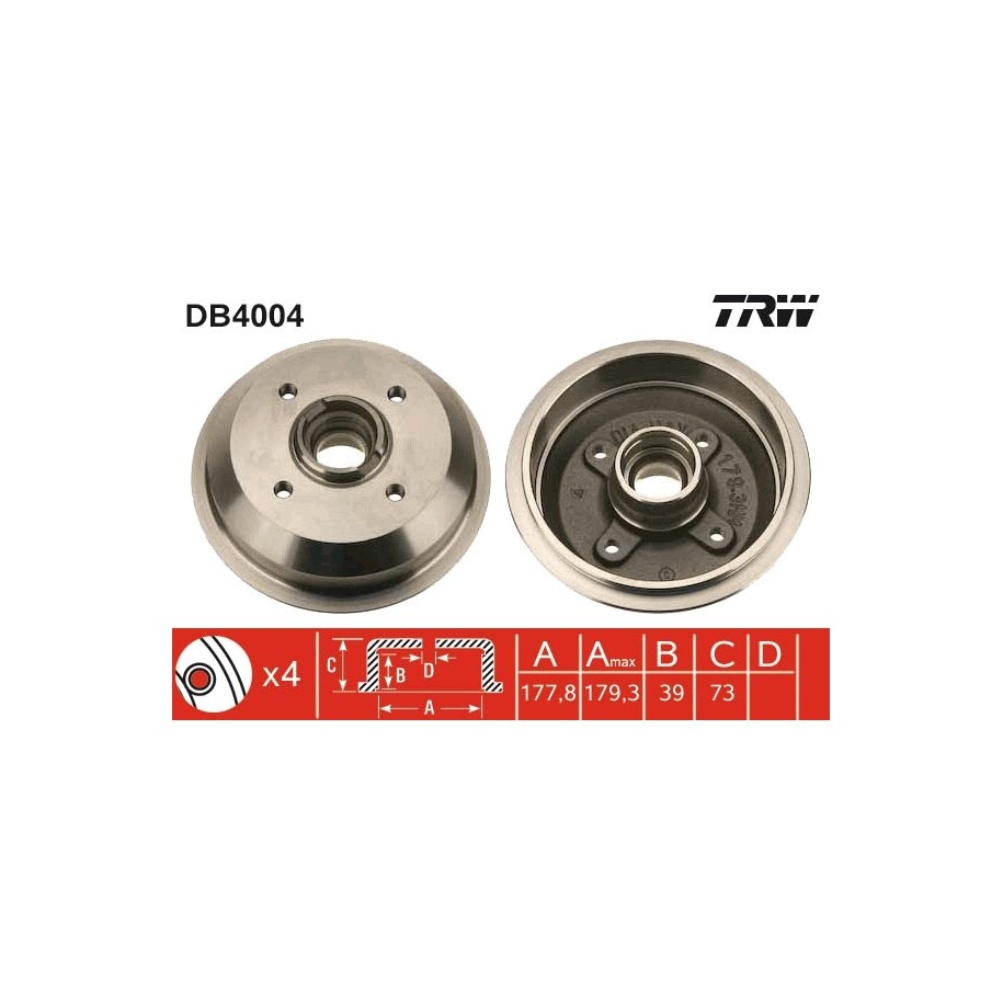 Produit : Tambour de frein TRW DB4004 pour FORD FIESTA OE D8RZ1126A