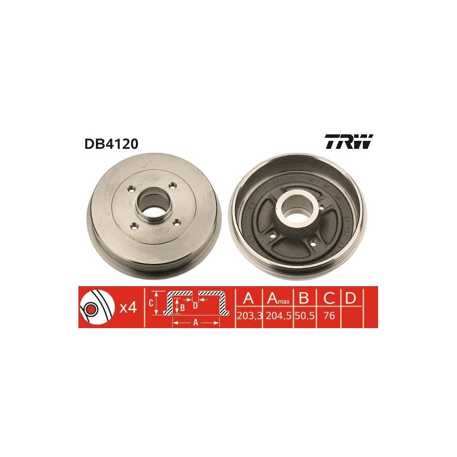 Tambour de frein TRW DB4120 pour RENAULT EXPRESS, RAPID OE 7700771653