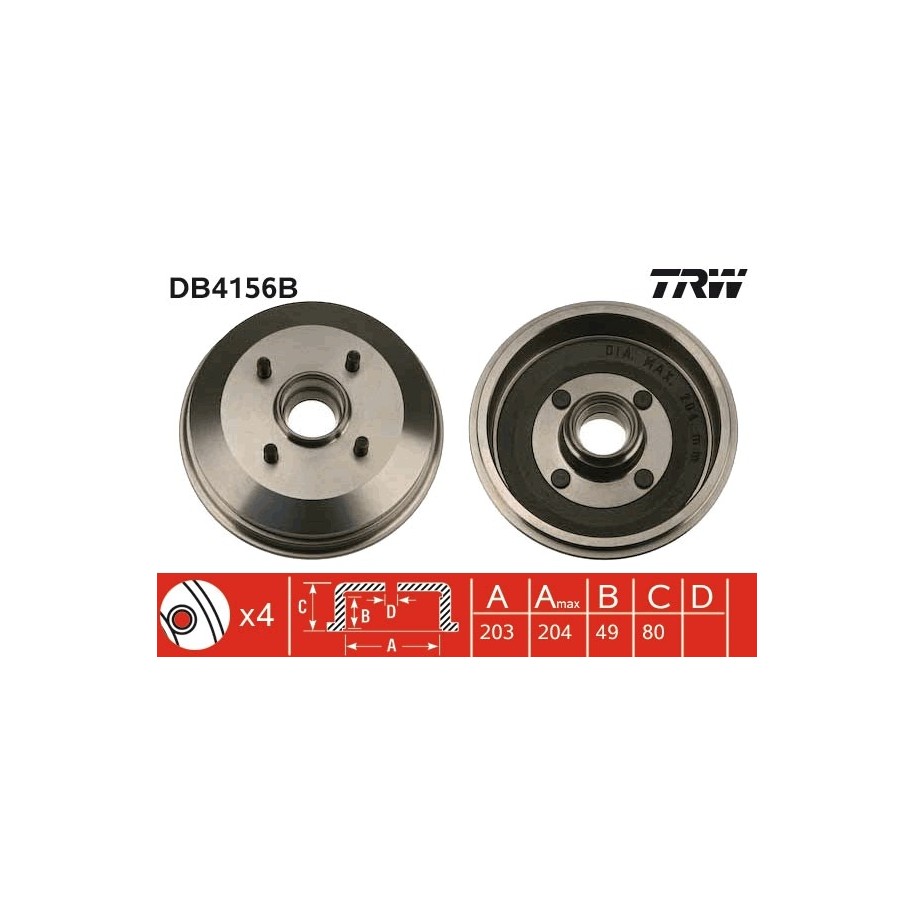 Produit : Tambour de frein TRW DB4156B pour FORD ESCORT, ORION OE 91AB-1113-AD
