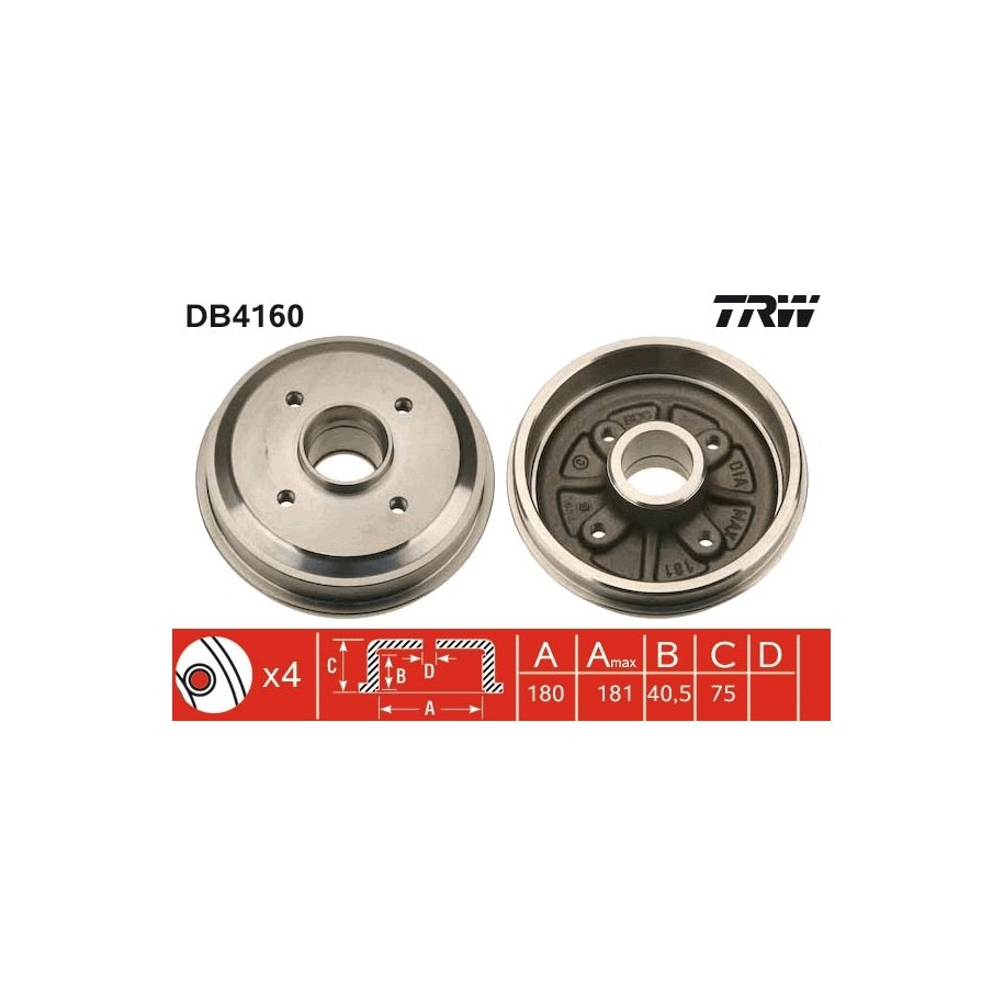 Ce Tambour de frein est une pièce équivalente OEM, compatible avec la référence constructeur , fabriquée par TRW conformément aux spécifications techniques d’origine. Il est destiné à offrir fiabilité et durabilité dans le cadre d’une réparation ou d’un remplacement standard.